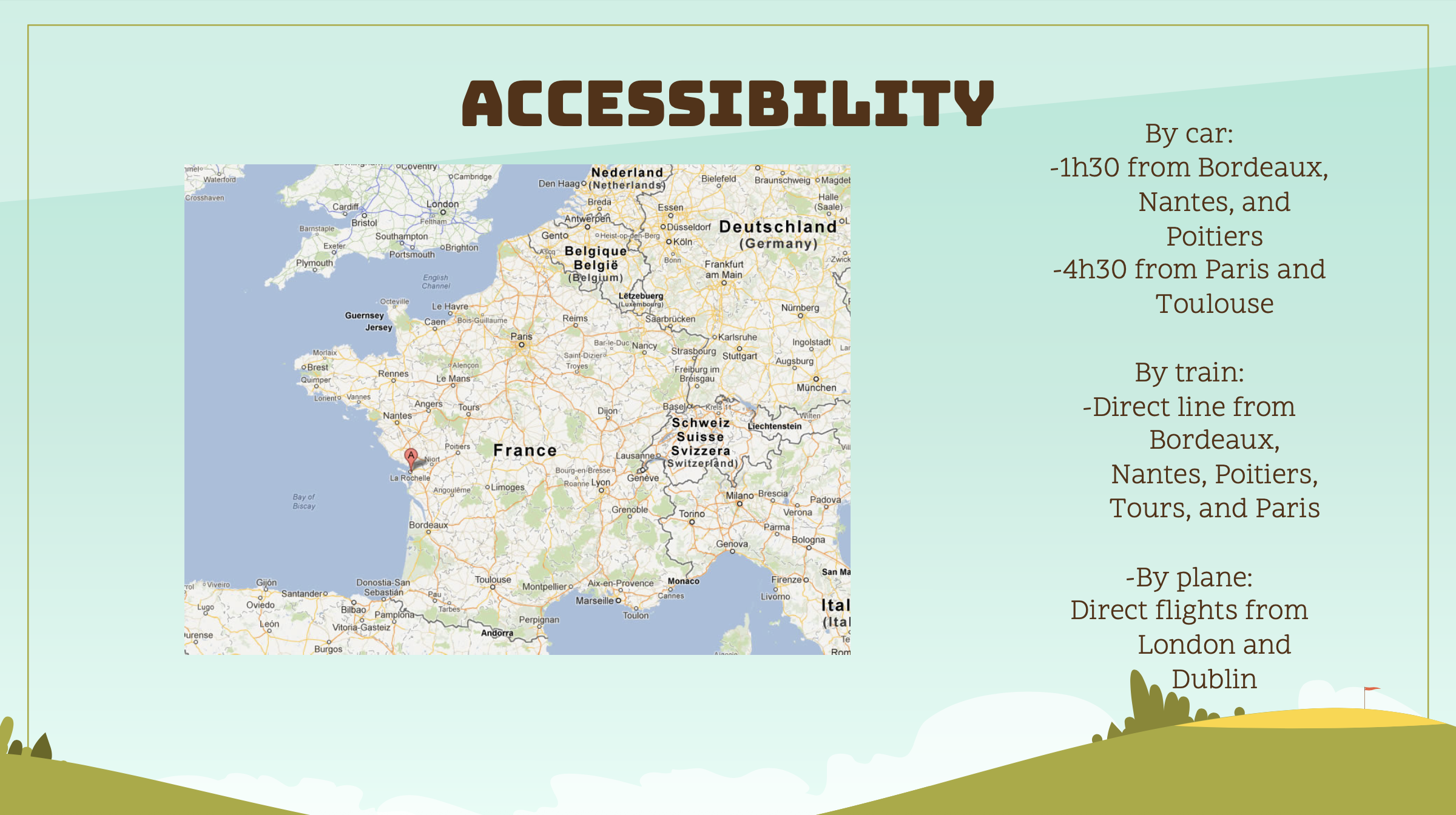 We offer 3 partner hotels & accommodations less than 10 minutes from the golf course: